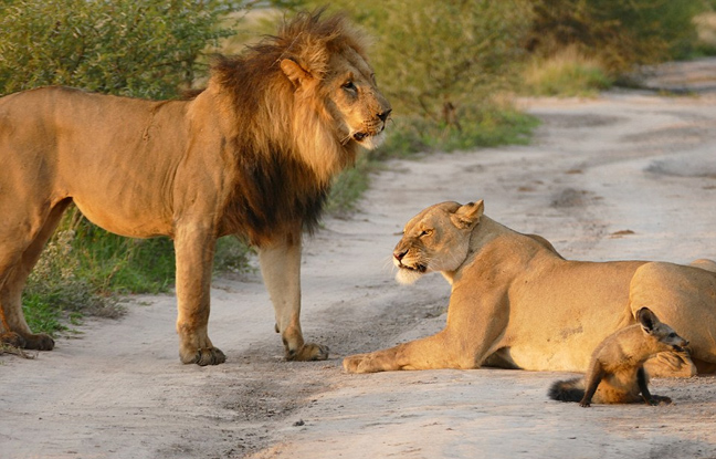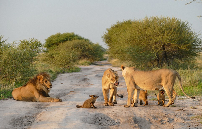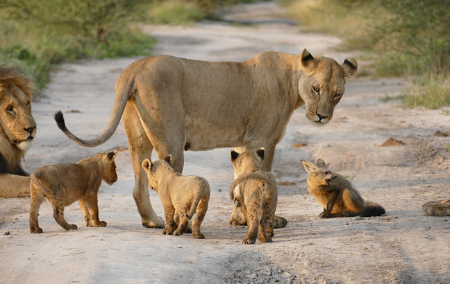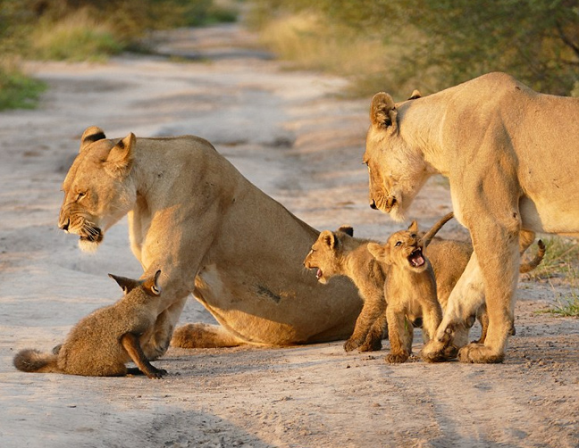 Για καλή της τύχη, τα λιοντάρια άκουσαν τους ήχους από κάπου αλλού όπου γινόταν μάχη για το φαγητό και έφυγαν βιαστικά προς αυτή την κατεύθυνση, αφήνοντας πίσω τραυματισμένη αλλά ζωντανή τη μικροσκοπική αλεπού.