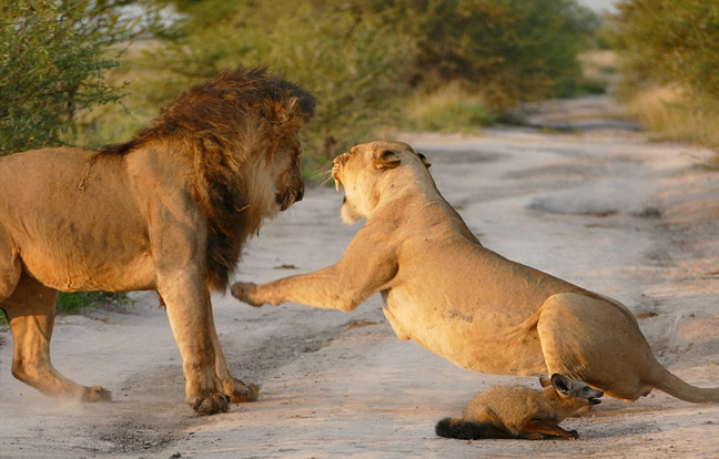 Η μικρή αλεπού της φωτογραφίας πάλεψε για τη ζωή της ακόμα και όταν όλα τα προγνωστικά ήταν εναντίον της, ακόμα και όταν ο αντίπαλός της ήταν πολύ μεγαλύτερος, πολύ ισχυρότερος και… αν μη τι άλλο, ο βασιλιάς της ζούγκλας.
