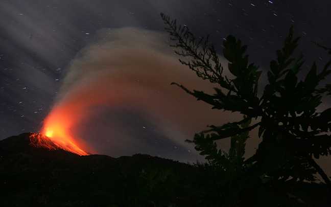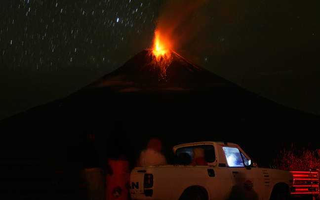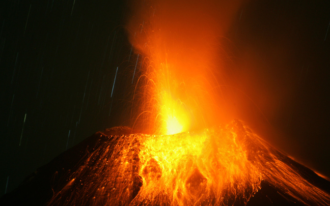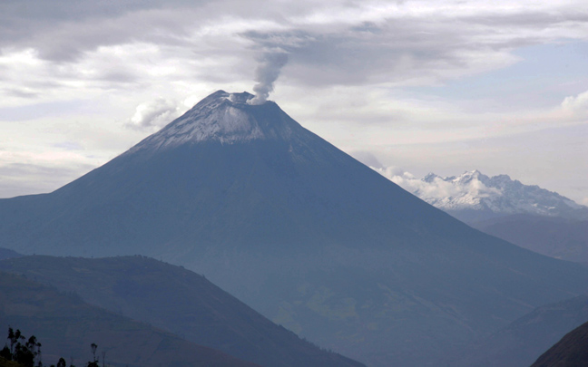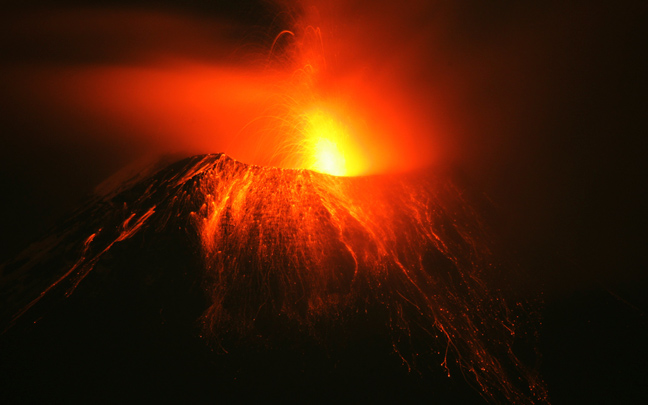 Φλεγόμενους βράχους και μεγάλα σύννεφα αερίων και στάχτης σκορπά το ηφαίστειο Τουνγκουράχουα, που υπενθυμίζει την παρουσία του στον Ισημερινό, κοντά στην περιοχή Μπάνος βόρεια της πρωτεύουσας Κίτο.