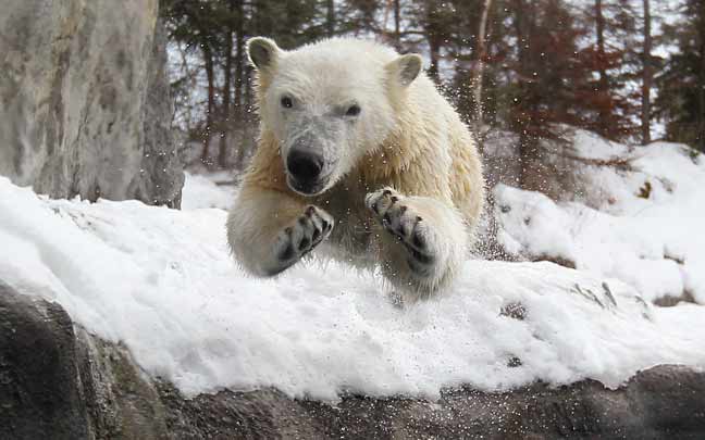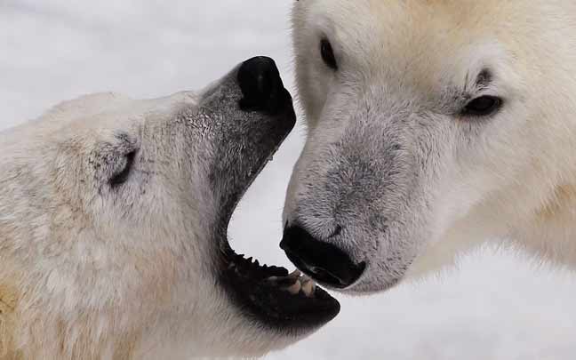 Τα δύο πολικά αρκουδάκια και η μαμά τους ζουν στο Ζωολογικό Κήπο Άγριας Ζωής στο St-Felicien στο Κεμπέκ.