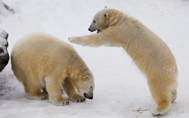 Τα εικονιζόμενα αρκουδάκια κοιμούνται μακαρίως στην ασφαλή αγκαλιά της μαμάς τους και δεν καταλαβαίνουν γιατί αστράφτουν τόσα πολλά φλας γύρω τους. Ο λόγος είναι πως ο Γκανούκ και η Τάιγκα έκλεισαν σήμερα τον πρώτο χρόνο της ζωής τους.
