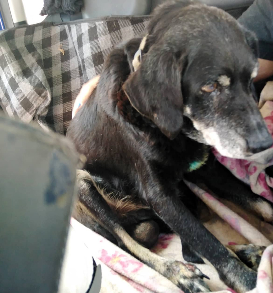 Μας ενημέρωσαν περίοικοι ότι δεν έτρωγε και δεν έπινε νερό και τον μεταφέραμε στον κτηνίατρο. Είναι παππούλης με αρθριτικά και αύριο θα κάνουμε βιοχημικές εξετάσεις και υπέρηχο κοιλίας, αφού προς το παρόν ήπιε μόνο νερό και δεν τρώει.