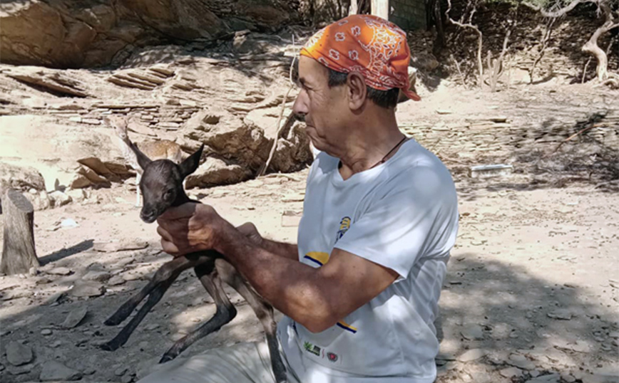 Στην φάρμα του Στέλιου Βαρθολομαίου στην Καππαριά της Άνδρου γεννήθηκε χθες 6 Ιουνίου 2022, ένα από τα πιο σπάνια ελάφια στον κόσμο. Ένα μαύρο ελάφι, γνωστό με την επιστημονική ονομασία «melanistic deer».