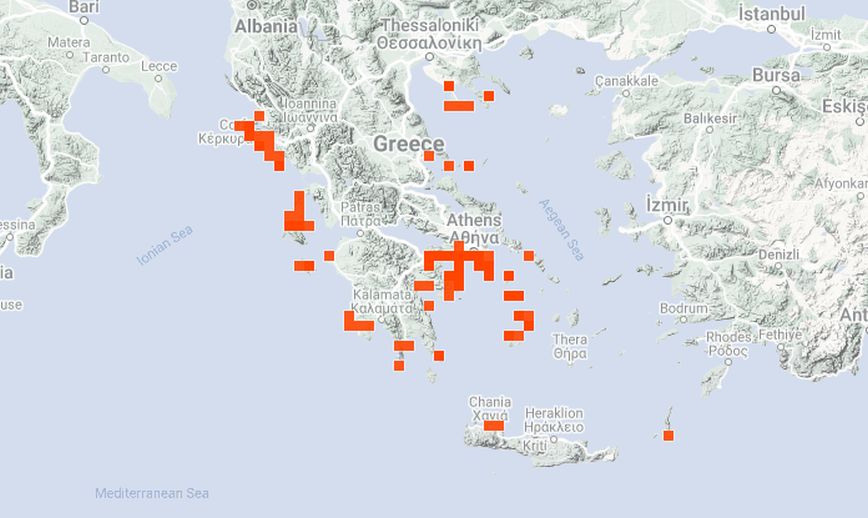 Σύμφωνα με τις καταγραφές του τελευταίου δεκαήμερου στην πλατφόρμα του iNaturalist, το μεγαλύτερο μέρος της πληθυσμιακής έξαρσης είναι στον Αργοσαρωνικό, με επέκταση στον Αργολικό και Κυκλάδες, στο Ιόνιο, στην Νότια Πελοπόννησο, στα Βόρειο-δυτικά της Κρήτης και στο 1ο πόδι της Χαλκιδικής.