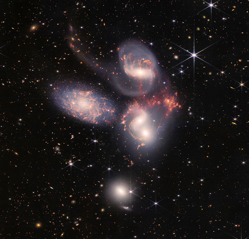 Έπειτα, δημοσίευσε ακόμα μια επιβλητική εικόνα από το σμήνος γαλαξιών του Κουιντέτο του Στέφαν (το πρώτο γκρουπ με γαλαξίες που παρατήρησε ποτέ ο άνθρωπος), όπου δείχνει τεράστια κρουστικά κύματα και παλιρροϊκές ουρές. Μάλιστα, το συγκεκριμένο στιγμιότυπο χαρακτηρίστηκε ως «πρώτη θέση στην παρατήρηση του διαστήματος».