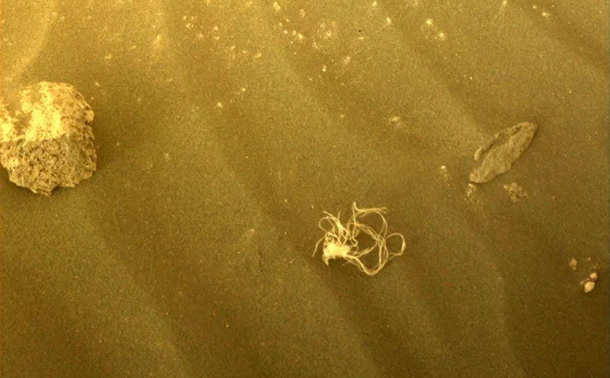 Όπως αναφέρει το βρετανικό δημοσίευμα, η φωτογραφία τραβήχτηκε από την Κάμερα Αποφυγής Κινδύνων του ρόβερ και δείχνει ένα διαστημικό σκουπίδι, που μοιάζει με σπαγγέτι, με το συγκεκριμένο στιγμιότυπο να έχει γίνει viral, καθώς αρκετοί αναρωτιούνται για το τί βλέπουν.