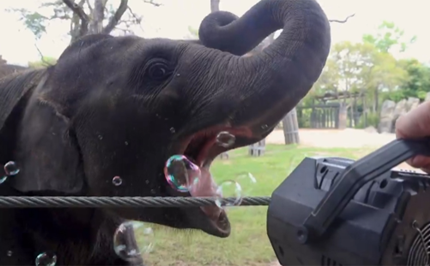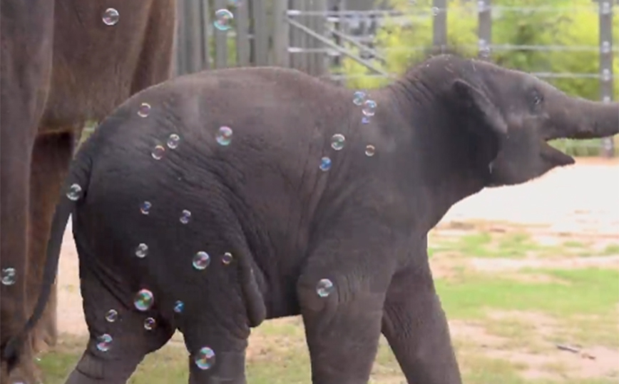 Ένα τρισχαριτωμένο βίντεο με πρωταγωνιστή ένα μικρό ελεφαντάκι έρχεται από το Τέξας και χαρίζει μοναδικές εικόνες. Ο Brazos, όπως λέγεται το μικρό ελεφαντάκι, περνά ευχάριστα την ώρα του προσπαθώντας να πιάσει με την προβοσκίδα του και το στόμα του τις φυσαλίδες που είναι μπροστά του.