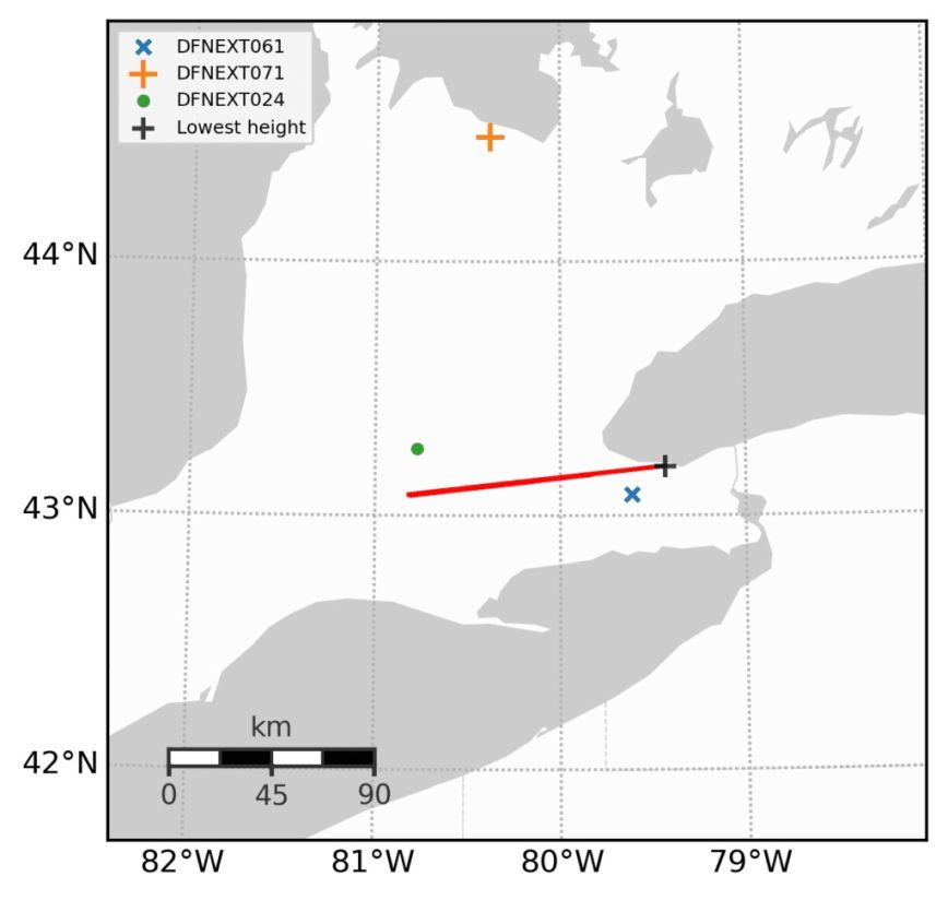 Τέσσερις εικόνες ήταν αρκετές για να υπολογίσουν οι αστρονόμοι την τροχιά τους αστεροειδούς. Πολλαπλά προγράμματα παρακολούθησης της σύγκρουσης βρήκαν πως ο διαστημικός βράχος είχε 20% πιθανότητες να πέσει κάπου στη Βόρεια Αμερική. Περαιτέρω παρατηρήσεις μπόρεσαν να μειώσουν το εύρος δίνοντας ώρα και σημείο. Όπως προέβλεψαν, ο αστεροειδής έπεσε στις 08:27 UTC στην περιοχή Golden Horseshoe στο νότιο Ontario του Καναδά.