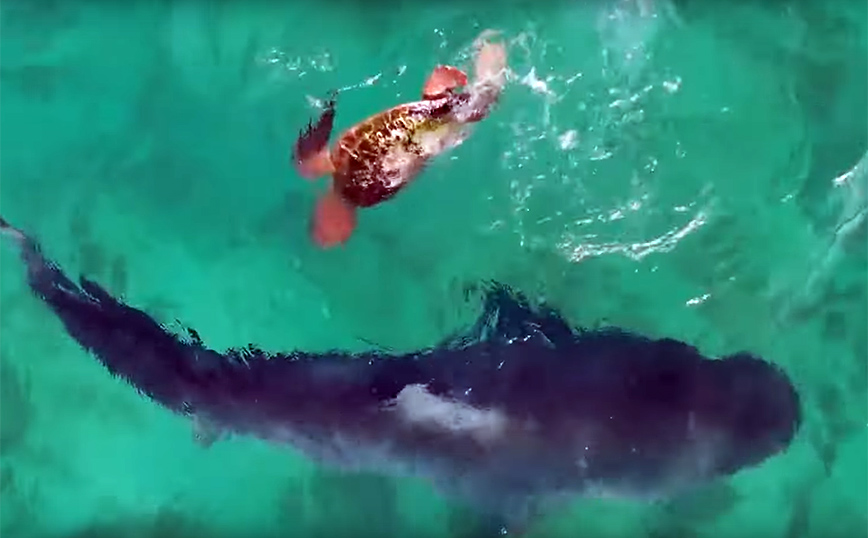 Ένα βίντεο καταγράφει τη μάχη που δίνει μια χελώνα με έναν καρχαρία στη θάλασσα κοντά σε μια απομονωμένη παραλία στη Δυτική Αυστραλία. Ο επαγγελματίας drone operator Jack Garnett δήλωσε στο Storyful ότι κατέγραψε τις εντυπωσιακές εικόνες τις τελευταίες ημέρες των οικογενειακών διακοπών στην ακτή Winderabandi.