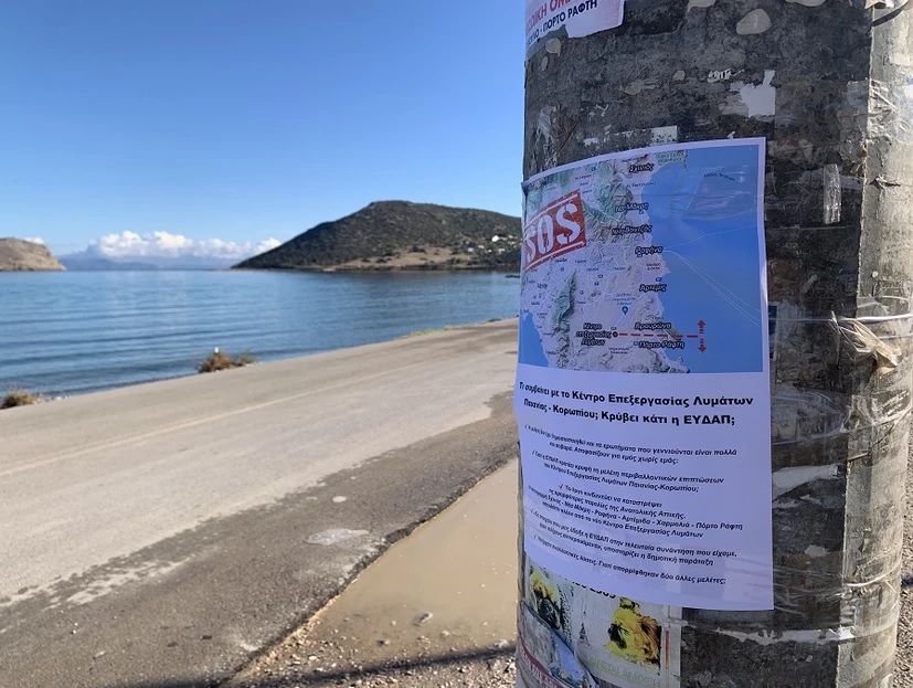 Τις τελευταίες ημέρες οι δρόμοι του Πόρτο Ράφτη και της Αρτέμιδας έχουν γεμίσει με αφίσες που αναφέρουν πως η περιοχή εκπέμπει SOS καθώς το Κέντρο Επεξεργασίας Λυμάτων κινδυνεύει να καταστρέψει τις ομορφότερες παραλίες της Ανατολικής Αττικής: από τον Σχοινιά, τη Νέα Μάκρη και τον Νέο Βουτζά, μέχρι τη Ραφήνα, τη Λούτσα και το Πόρτο Ράφτη, ενώ μεταφέρει και τις ανησυχίες των δημοτικών παρατάξεων του δήμου Μαρκοπούλου Μεσογαίας πως «τα στοιχεία που μας έδειξε η ΕΥΔΑΠ στην τελευταία συνάντηση που είχαμε, ήταν πλήρως αντικρουόμενα».
