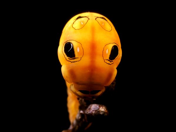 Η συγκεκριμένη κάμπια στο Cape Cod της Μασαχουσέτης Massachusetts, επιδεικνύει με έντονο τρόπο τα μάτια της προκειμένου να αποτρέψει τα αρπακτικά ζώα που αναζητούν ένα εύκολο γεύμα.