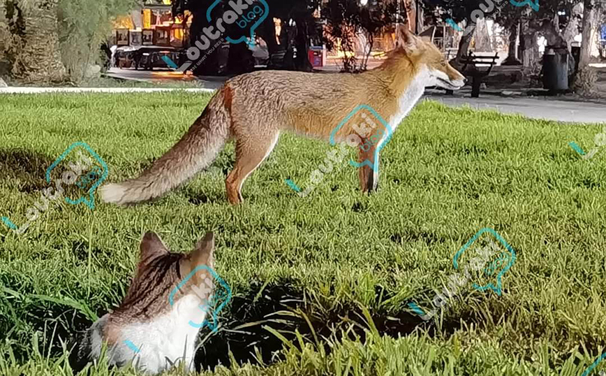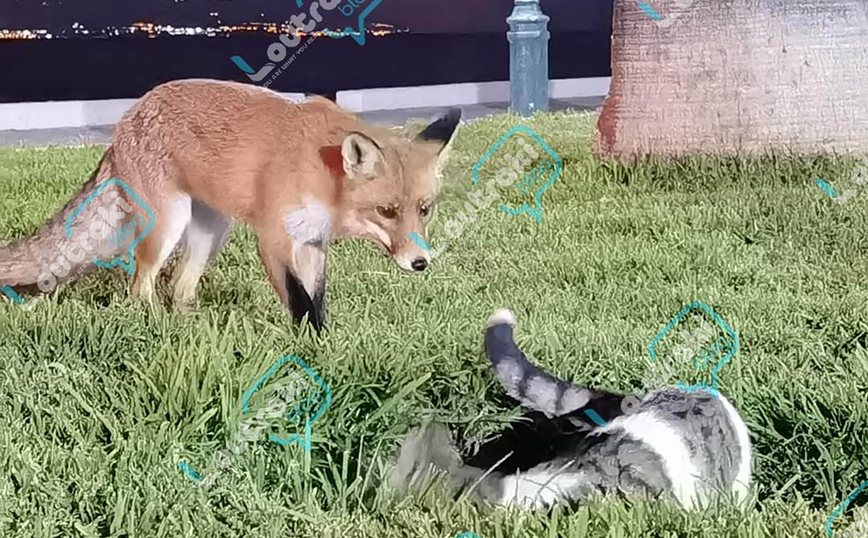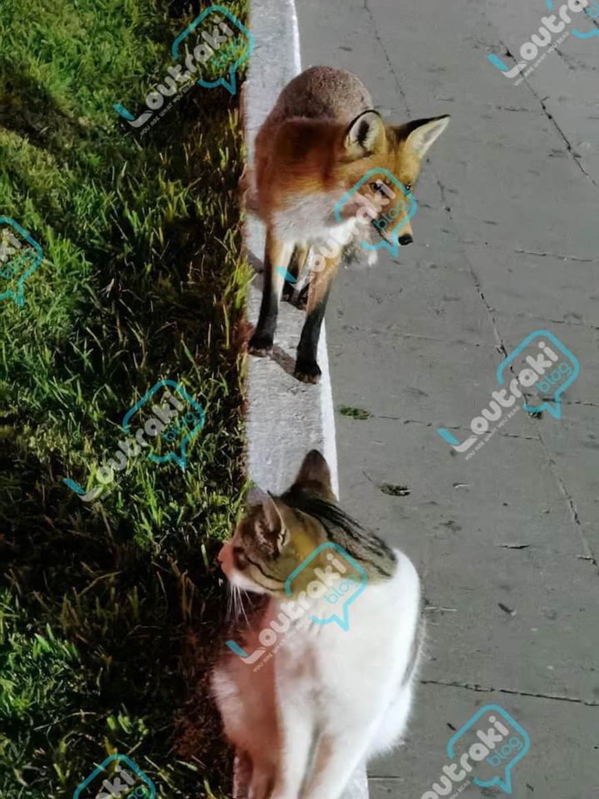 Ένα ασυνήθιστο περιστατικό καταγράφηκε στο Λουτράκι, αφού ο φωτογραφικός φακός εντόπισε μια αλεπού να κάνει παρέα σε μια γάτα και μάλιστα έπαιζαν μεταξύ τους.