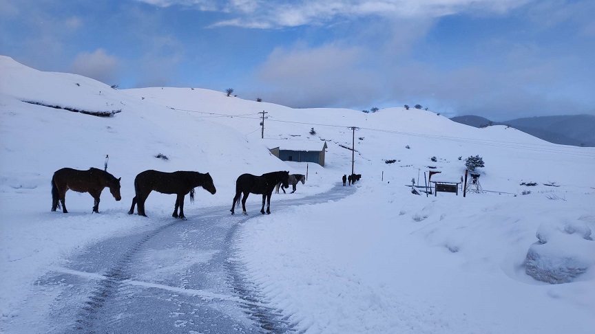 Εντυπωσιακές είναι οι εικόνες που κατέγραψε η κάμερα της ΕΡΤ στο Μέτσοβο. Άγρια άλογα της Πίνδου δίνουν μάχη επιβίωσης στο χιόνι. Άμεση ήταν η κινητοποίηση της Πολίτικης Προστασίας για την μεταφορά ζωοτροφών, που τοποθετήθηκαν σε διάφορα σημεία για να σωθούν τα ζώα, που κινδυνεύουν από το κρύο και την ασιτία.
