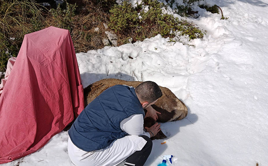 Ο ειδικός αναισθητοποίησε το ελάφι, έκανε τις σχετικές εξετάσεις, ενώ θα στηθεί ολόκληρη επιχείρηση, ώστε να βγει και ακτινογραφία για να διαπιστωθεί η πορεία της υγείας του μετά τη χορήγηση αντιβιοτικών.