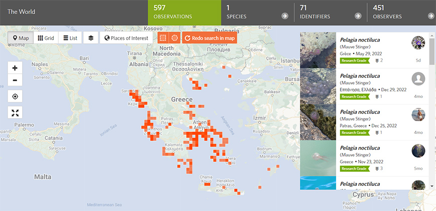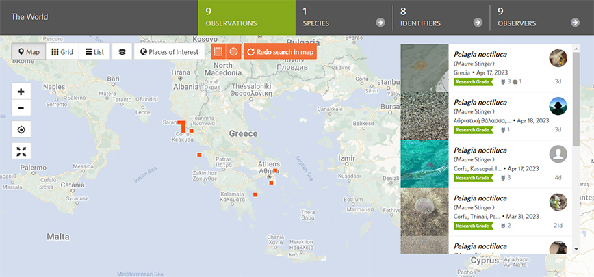 Δείτε εδώ τον χάρτη με τις καταγραφές όλων των ειδών
