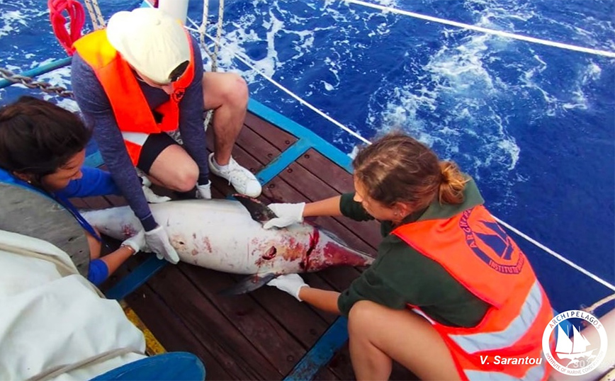 Ειδικότερα το Ινστιτούτο Θαλάσσιας Προστασίας Αρχιπέλαγος σημειώνει: Δύο ακόμα θανατωμένα ζωνοδέλφινα (Stenella coeruleoalba), εντοπίστηκαν εχθές το απόγευμα στο ανοιχτό πέλαγος στο ΒΑ Αιγαίο από ερευνητές μας. Στην ίδια περιοχή είχαμε πρόσφατα εντοπίσει και άλλα δύο θανατωμένα δελφίνια του ίδιου είδους. Σε αυτή την ιδιαίτερα εκτεταμένη θαλάσσια έκταση, όπου η ακτογραμμή ξεπερνάει τα 50 μίλια σε μήκος, εκτιμάται ότι ο συνολικός αριθμός των νεκρών δελφινιών είναι πολύ μεγαλύτερος, καθώς στην πλειονότητά τους δεν γίνονται αντιληπτά. Όταν τα δελφίνια θανατώνονται, συχνά ανοίγεται μεγάλη οπή στην κοιλιακή τους χώρα, με στόχο να βυθιστούν ταχύτερα και να μην φτάσουν στις ακτές και υπάρξουν ίχνη των θανατώσεων».