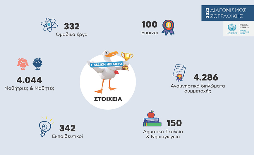 Μέσα από την κατανόηση της κλιματικής αλλαγής, 4.044 παιδιά από 150 Νηπιαγωγεία και Δημοτικά Σχολεία όλης της χώρας, με την εθελοντική καθοδήγηση 342 εκπαιδευτικών, εμπνεύστηκαν, πρότειναν λύσεις και δημιούργησαν 332 ομαδικά έργα στο πλαίσιο του ετήσιου πανελλήνιου διαγωνισμού ζωγραφικής της Παιδικής HELMEPA, με θέμα: «Κλιματική αλλαγή: Υπάρχουν λύσεις!».