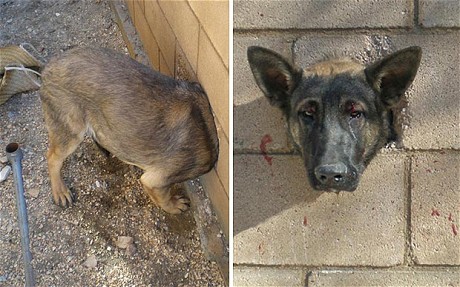 Το γερμανικό λυκόσκυλο της φωτογραφίας ονομάζεται Rebel και όπως βλέπετε βρέθηκε σε μία πολύ δυσάρεστη κατάσταση.