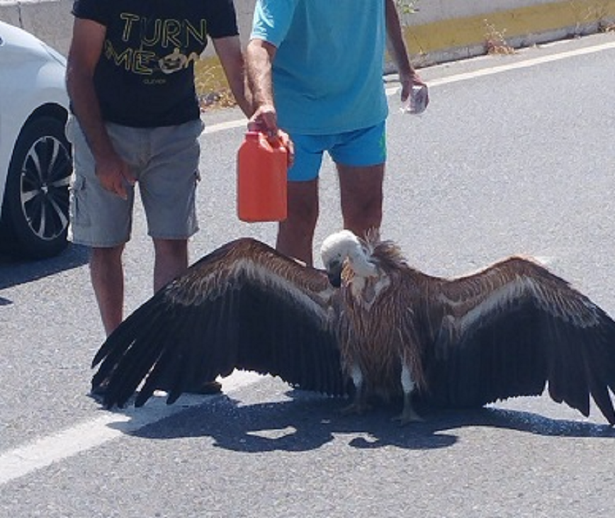 Κόντεψε να πεθάνει ένας γυπαετός στην Κρήτη, αφού λόγω του καύσωνα βρέθηκε σε λιπόθυμη κατάσταση στη μέση της εθνικής οδού στο Ηράκλειο, καθώς αναζητούσε λίγο νερό.