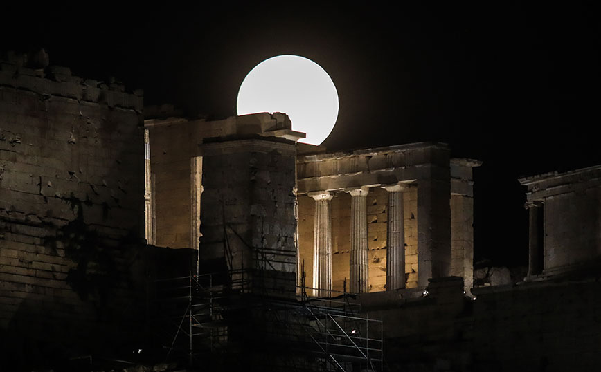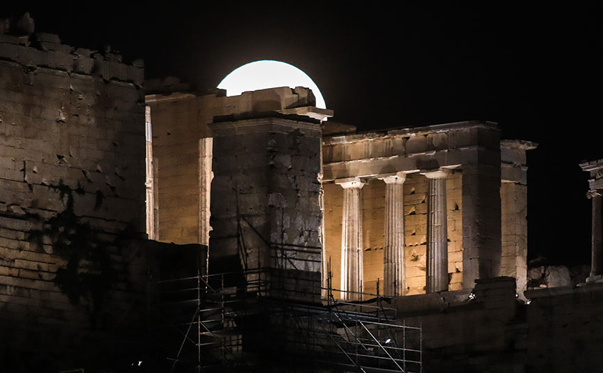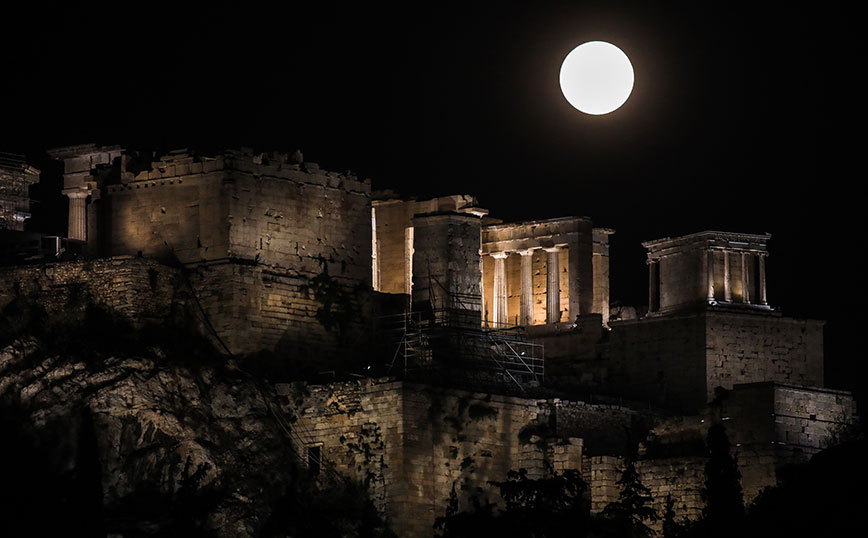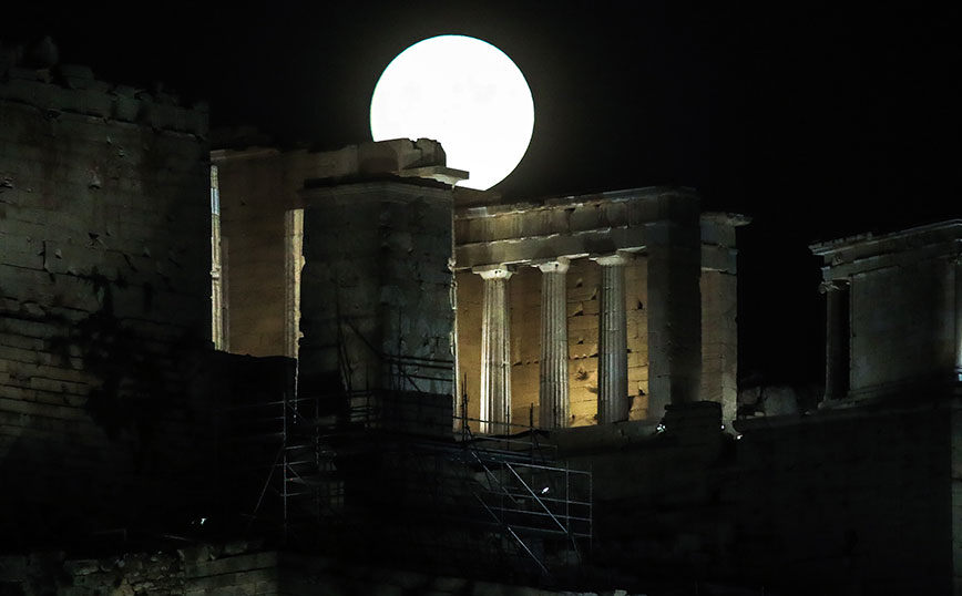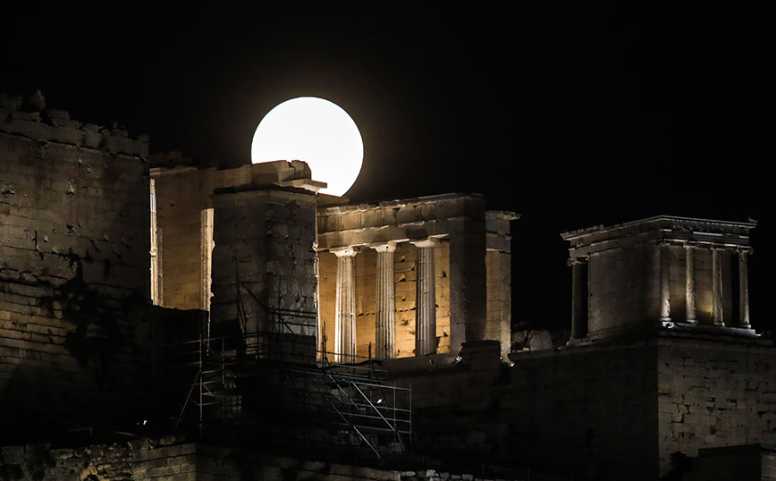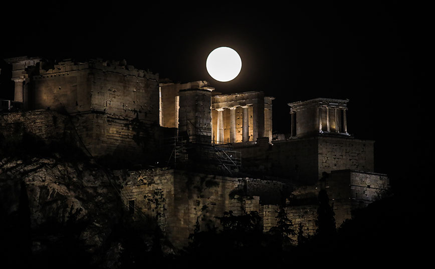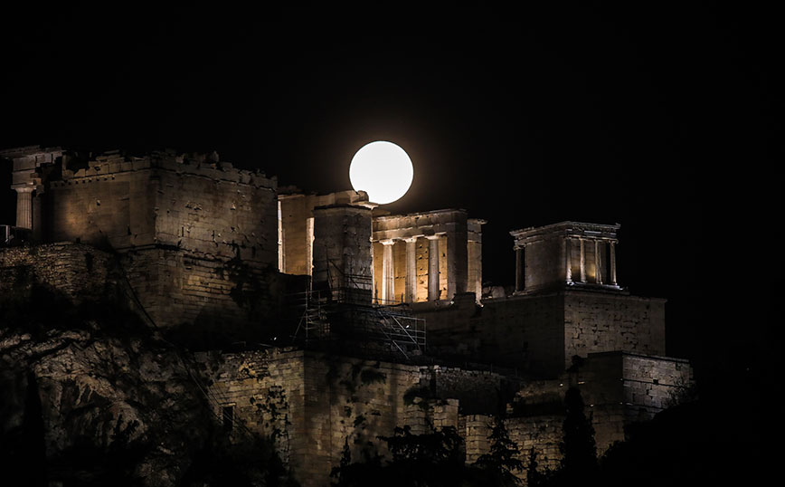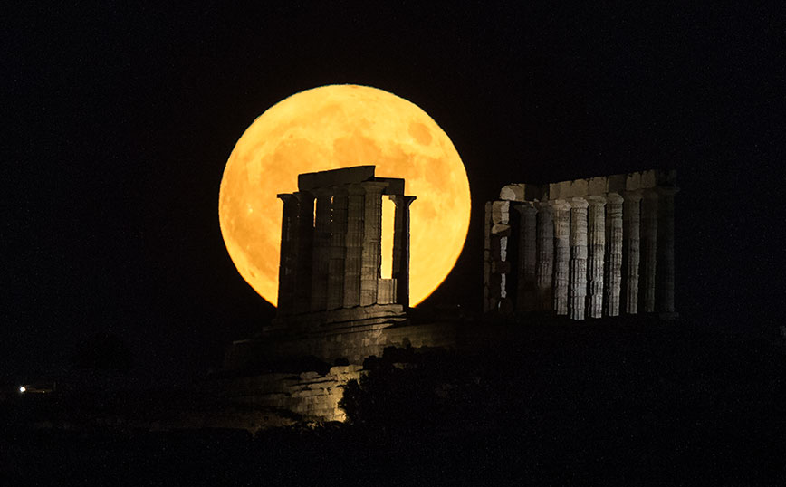 Οι Αθηναίοι θαύμασαν μία πανέμορφη πανσέληνο, με το Σούνιο να έχει την τιμητική του.