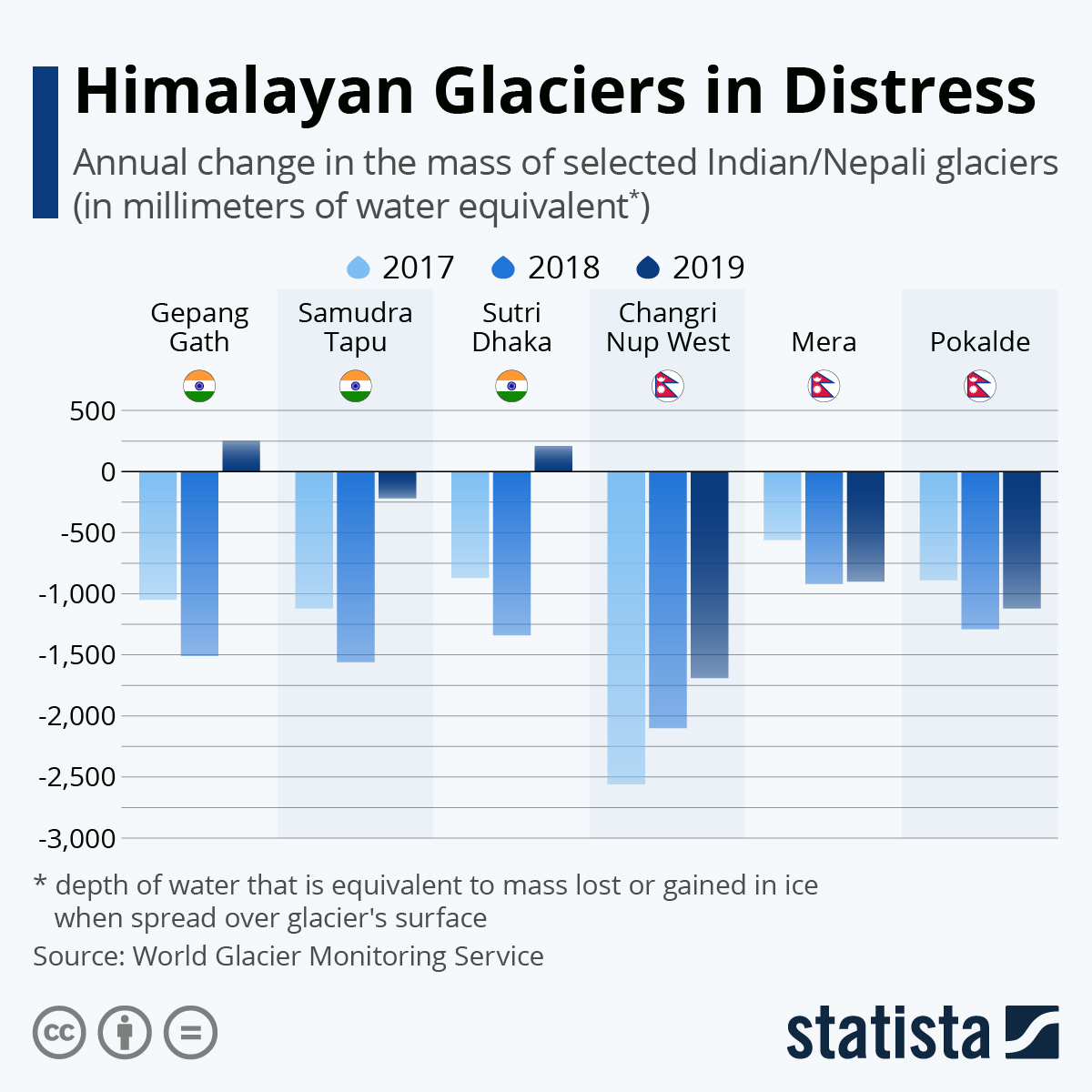 Οι παγετώνες της υψηλότερης οροσειράς του κόσμου λοιπόν λιώνουν 65% ταχύτερα στην περίοδο 2011-2020, σε σχέση με την προηγούμενη δεκαετία.