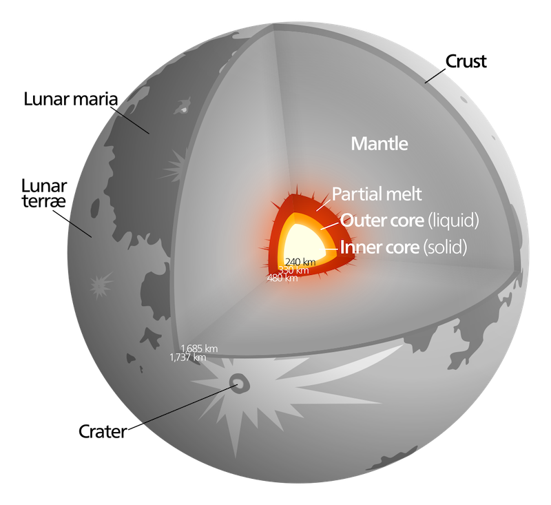 Σύμφωνα με το πρώτο σενάριο, το εσωτερικό της Σελήνης είναι καυτό και ένα μικρό μέρος του έχει λιώσει, σχηματίζοντας ένα παχύ στρώμα αδύναμων υλικών θαμμένα κάτω από 1.000 χιλιόμετρα από την επιφάνεια.