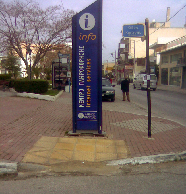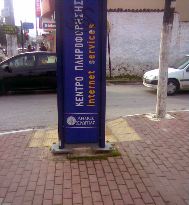 Σας δείχνω τη μέριμνα που δείχνει σε εμένα τον ανάπηρο, ο δήμαρχος μου που πήρε τα χρήματα από προγράμματα για να φτιάξει ράμπες, και στην συνέχεια παίρνει πάλι χρήματα τοποθετώντας διαφημιστικές πινακίδες ΜΠΡΟΣΤΑ ΣΤΙΣ ΡΑΜΠΕΣ και εμένα με άφησε στο δρόμο χωρίς να μπορώ να ανέβω στο πεζοδρόμιο!