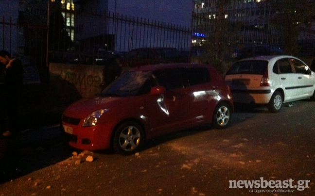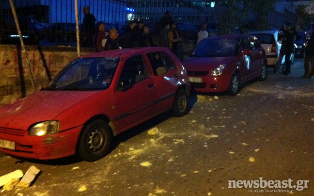 Ευτυχώς δεν περνούσε κανείς από κάτω ενώ σοβαρές υλικές ζημιές προκλήθηκαν σε δύο σταθμευμένα αυτοκίνητα.