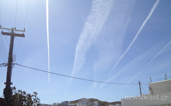 Περίεργες άσπρες σκιές σχηματίστηκαν στον ουρανό της Κύθνου προκαλώντας την έκπληξη των κατοίκων του νησιού.