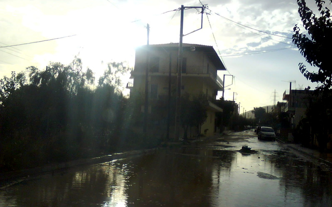 Η οδός Προκοπίου στο Μενίδι μετά από νεροποντή