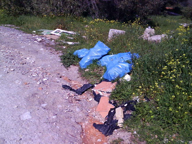 «Μερικές δεκάδες μέτρα από τις ωραίες αθλητικές εγκαταστάσεις του δήμου και δίπλα στον συνοικισμό Παπανδρέου ο δημότης που θα πάει για περίπατο θα δει πεταμένα σκουπίδια και μπάζα τα οποία παραμένουν για αρκετό καιρό εκεί χωρίς κάποιος από το τμήμα καθαριότητας του δήμου να ασχοληθεί.