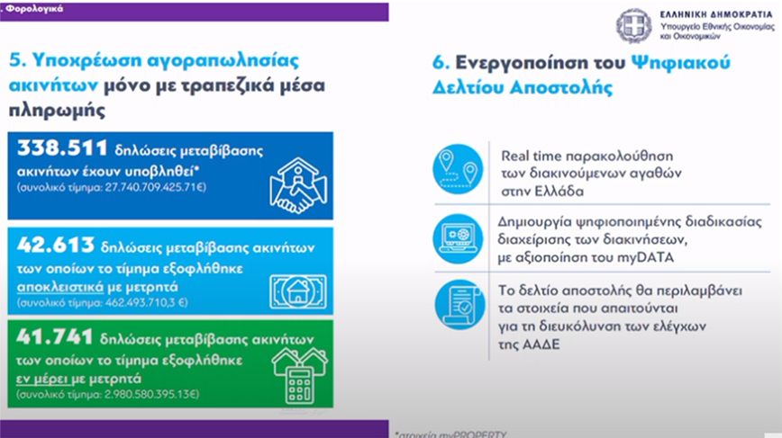 - Υποχρεωτικές αγοραπωλησίες ακινήτων μόνο με τραπεζικά συστήματα πληρωμής.