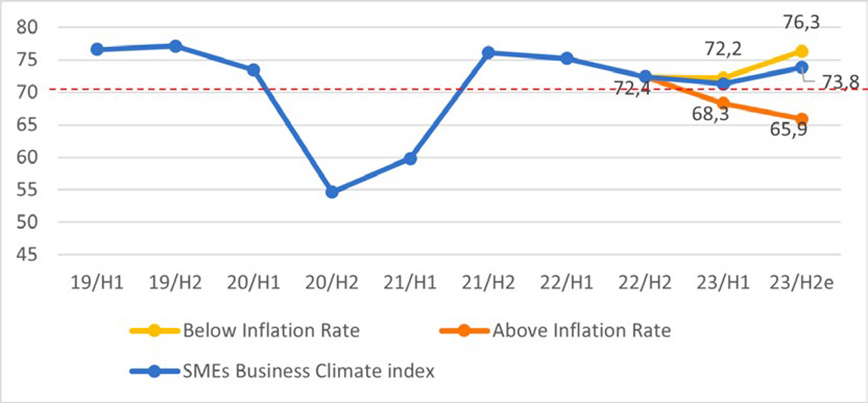 Ανάκαμψη της εμπιστοσύνης δείχνει ο Δείκτης Επιχειρηματικού Κλίματος ΜμΕ που παρουσιάστηκε από την Ευρωπαϊκή Συνομοσπονδία Βιοτεχνικών, Μικρών και Μεσαίων Επιχειρήσεων (SMEunited). Ωστόσο, αυτό δεν ισχύει για τις μικρομεσαίες επιχειρήσεις σε χώρες με ρυθμούς πληθωρισμού άνω του μέσου όρου, οι οποίες παρουσιάζουν μείωση της εμπιστοσύνης με σημάδια ύφεσης. Επιπλέον, τα αποτελέσματα του Βαρόμετρου για τις ΜμΕ για την άνοιξη του 2023 είναι ελαφρώς ανοδικά και σημαντικά πάνω από τις προσδοκίες. Οι προοπτικές δείχνουν υψηλό βαθμό αβεβαιότητας, με συνέχιση της έλλειψης εργατικού δυναμικού και συνεχιζόμενη πίεση στις τιμές.