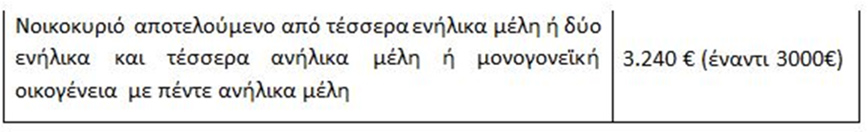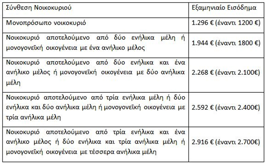 Το εξαμηνιαίο εισόδημα δεν μπορεί να υπερβαίνει πλέον το ποσό των 5.832 ευρώ (έναντι 5.400 ευρώ προ της αυξήσεως), ανεξαρτήτως του αριθμού των μελών του νοικοκυριού.