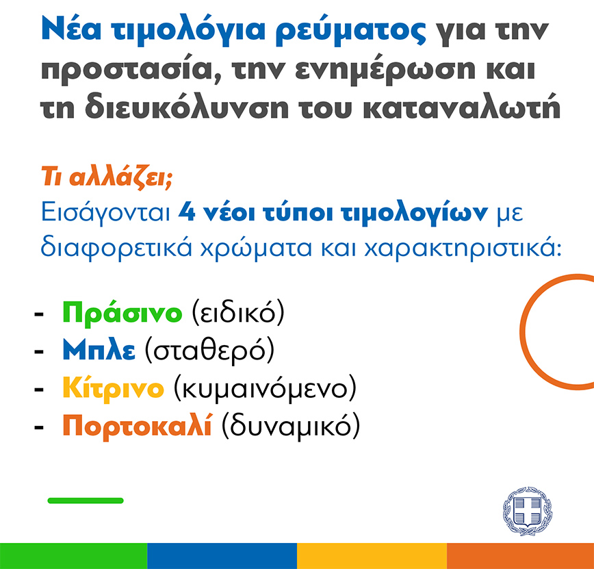 Για τη διευκόλυνση του καταναλωτή, τα τιμολόγια συνδέθηκαν με ένα χρώμα. Με το μπλε τα σταθερά, με το κίτρινο τα κυμαινόμενα και με το πορτοκαλί τα δυναμικά.