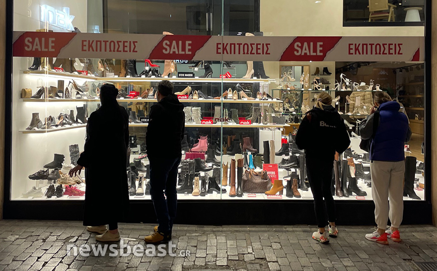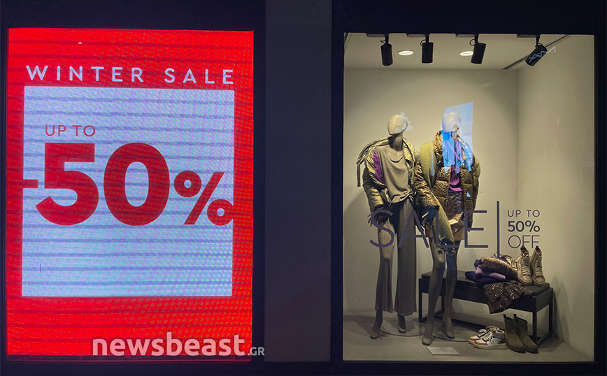 Η κάμερα του Newsbeast βρέθηκε νωρίς το πρωί της Δευτέρας (8/1) στην Ερμού και κατέγραψε εικόνες από τις βιτρίνες των καταστημάτων.