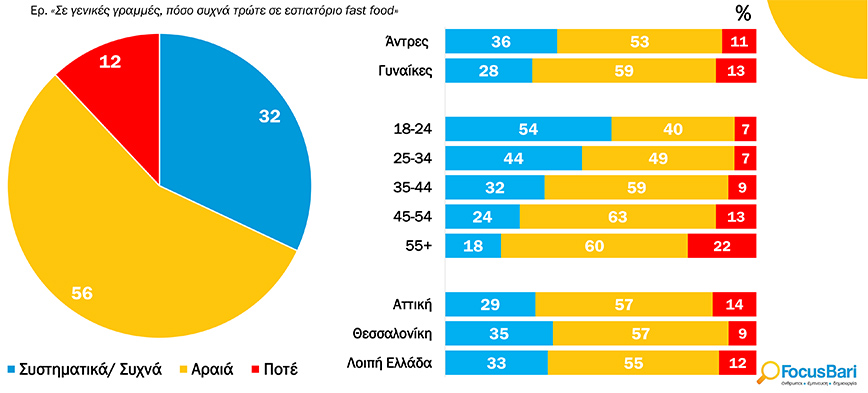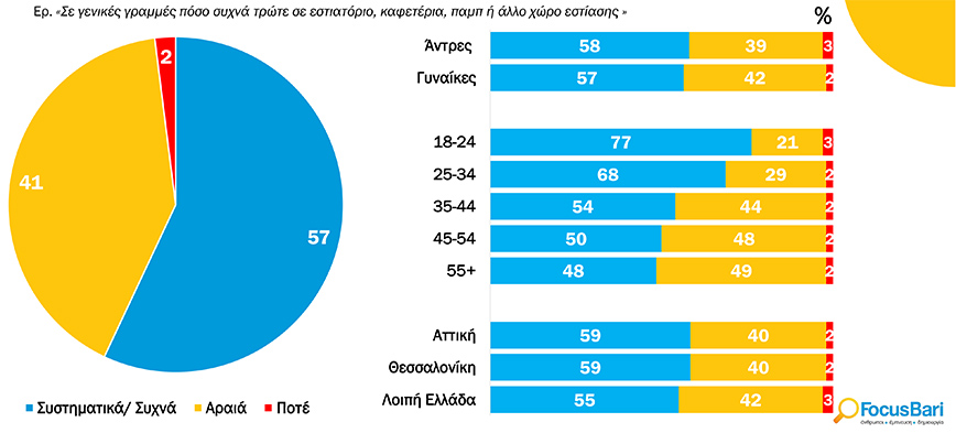 Οι Έλληνες αγαπούν να βγαίνουν έξω για φαγητό : ειδικά οι νέοι, αλλά και οι μεγαλύτεροι σε σημαντική αναλογία τρώνε έξω σε εστιατόρια συστηματικά/πολύ συχνά!
