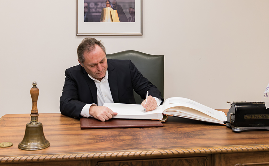 Το Χρηματιστήριο Αθηνών υποδέχθηκε σήμερα τη Διοίκηση, στελέχη και συνεργάτες της Autohellas, με αφορμή την πρόσφατη έναρξη διαπραγμάτευσης του ομολόγου της στην Κύρια Αγορά του Χρηματιστηρίου, την Τετάρτη 24 Ιανουαρίου. Ο Διευθύνων Σύμβουλος της Autohellas κ. Ευτύχιος Βασιλάκης κήρυξε την έναρξη της συνεδρίασης χτυπώντας το παραδοσιακό καμπανάκι.