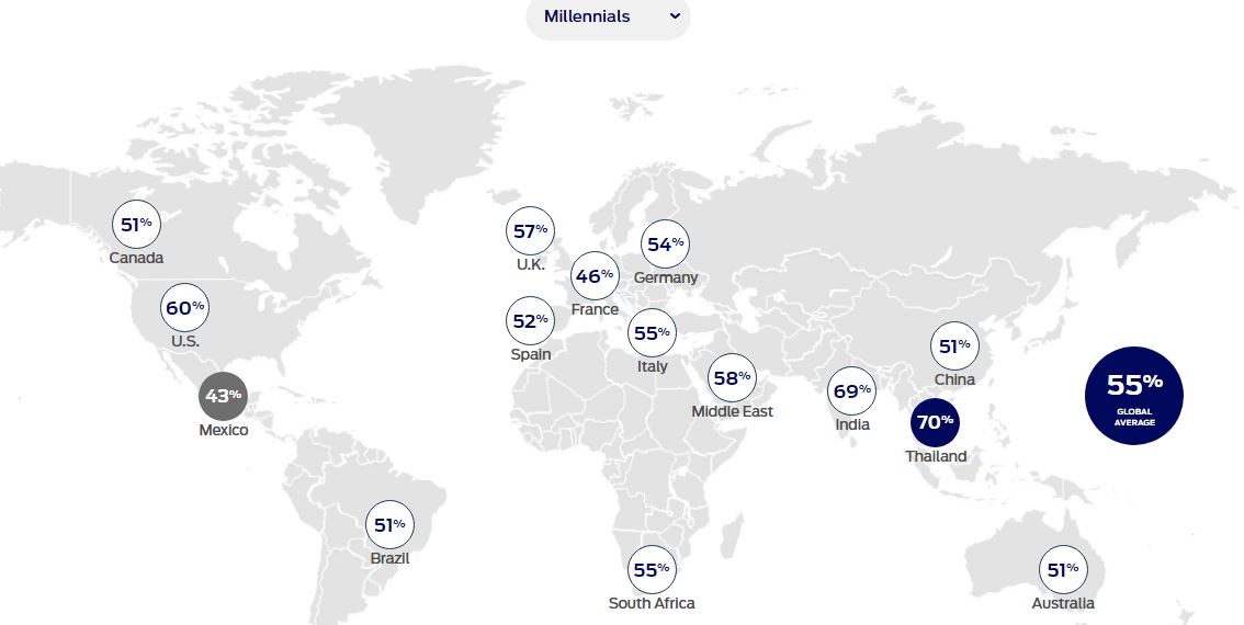 Αξίζει να σημειωθεί ότι οι μόνες χώρες με περισσότερους millennials πρόθυμους να δεχτούν μείωση μισθού σχεδόν κατά ένα τέταρτο, για να δώσουν προτεραιότητα στην ποιότητα ζωής τους, ήταν η Ταϊλάνδη με 70% και η Ινδία με 69%.