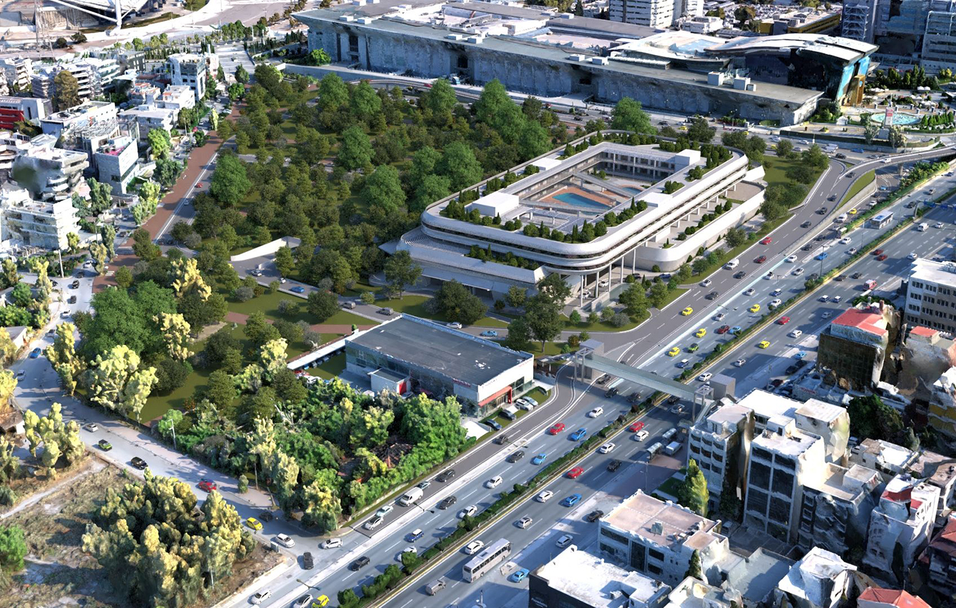 Στον «πράσινο» και βιώσιμο σχεδιασμό του κτιρίου, αναφέρθηκε ο Σπύρος Τσαγκαράτος, Πρόεδρος και Διευθύνων Σύμβουλος του αρχιτεκτονικού γραφείου ASPA-KST που έχει αναλάβει την αρχιτεκτονική μελέτη του έργου υπογραμμίζοντας ότι με την υλοποίηση του έργου ολοκληρώνεται ο πολεοδομικός σχεδιασμός στην περιοχή και ως αποτέλεσμα τακτοποιούνται περιουσίες πολιτών οι οποίοι θα δουν τα ακίνητά τους να αποκτούν μεγαλύτερη αξία. Όπως τόνισε, το 42% της έκτασης θα αποτελούν κοινόχρηστοι και κοινωφελείς χώροι και ένα πρόσθετο 35% θα είναι ακάλυπτη επιφάνεια πρασίνου με ελεύθερη πρόσβαση.