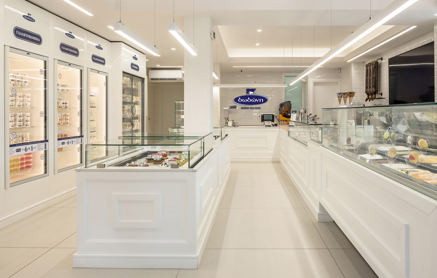 Το νέo, εξελιγμένο concept καταστημάτων «Παγωτά Δωδώνη» θα είναι παράλληλα Gelateria, Γαλακτοπωλείο και Ζαχαροπλαστείο με υπερψυγμένο γλυκό. Τα νέα καταστήματα θα προσφέρουν παραδοσιακές γεύσεις και προϊόντα εξαιρετικής ποιότητας, με κύριο συστατικό το φυσικό γάλα αλλά και ροφήματα, φυσικούς χυμούς και ιταλικό καφέ.