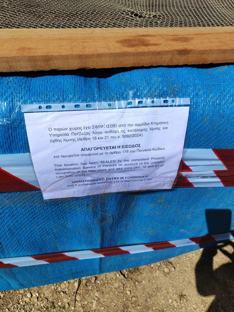 Προσωρινό «λουκέτο» μπήκε σε επιχείρηση στη Λίμνη Ζηρού στον νομό Πρέβεζας, καθώς το μαγαζί είχε καταλάβει παράνομα τμήμα της όχθης της λίμνης και των υδάτων.