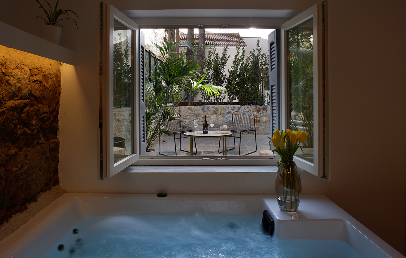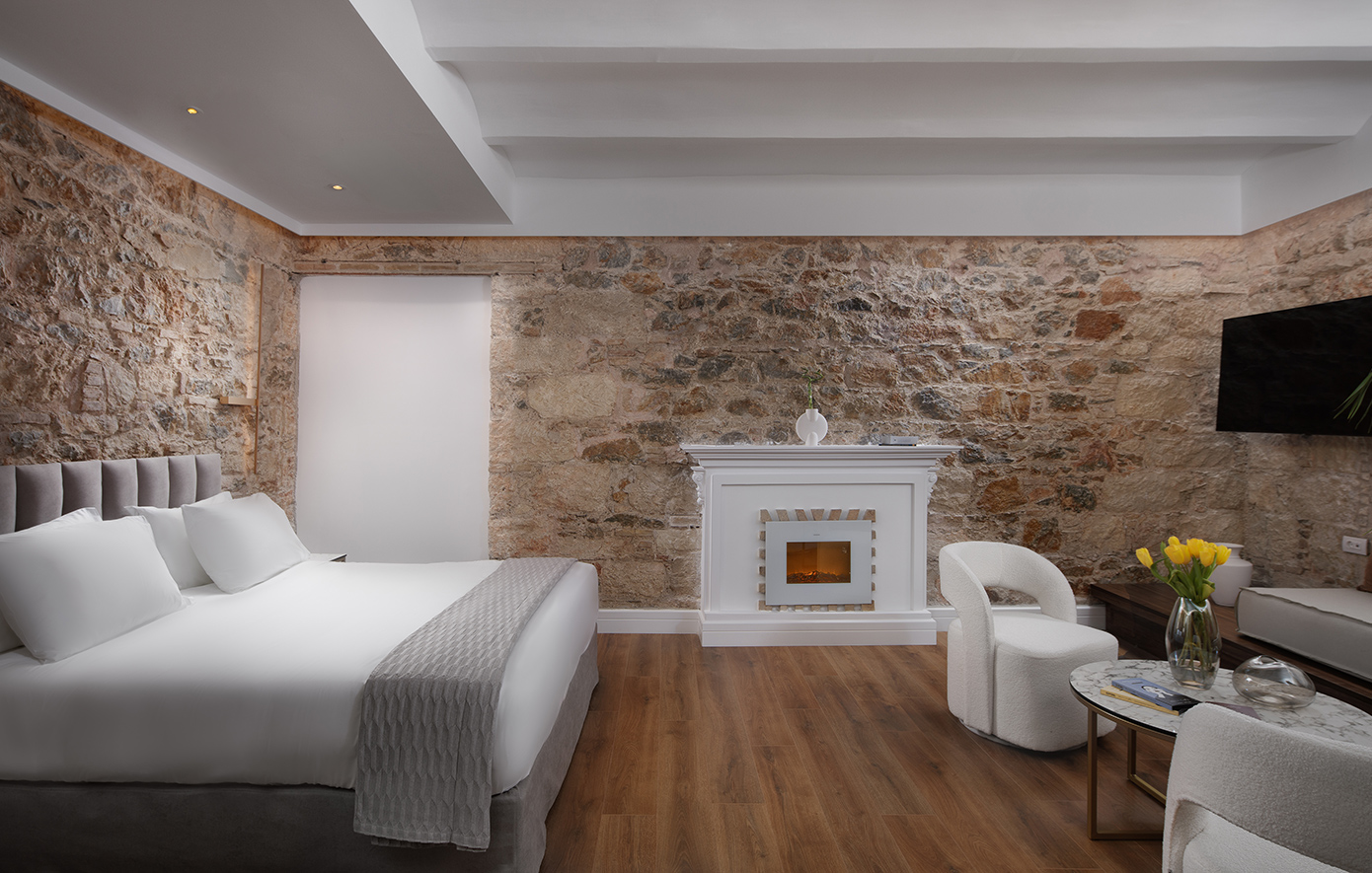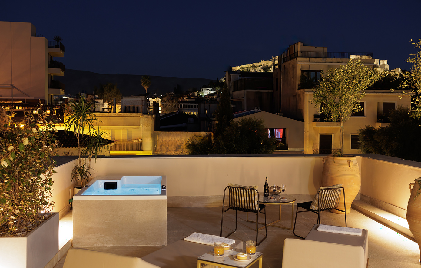 Κάθε του σημείο έχει σχεδιαστεί με προσοχή στη λεπτομέρεια. Με 12 σουίτες που έχουν την αύρα μιας άλλης εποχής και κυρίαρχα στοιχεία την πέτρα και το φως, μπορεί κανείς να απολαύσει μοναδικές στιγμές, με θέα την Ακρόπολη, την Αρχαία Αγορά του Θησείου και το Αστεροσκοπείο της Αθήνας.