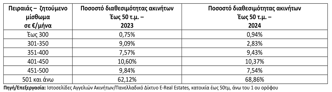 Πειραιάς: 7 στα 10 διαθέσιμα προς μίσθωση ακίνητα έχουν ζητούμενο μίσθωμα άνω των 500€/μήνα