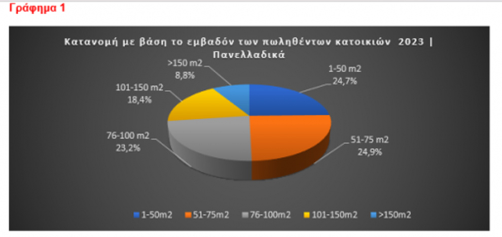 Αν συγκρίνει κανείς τα περυσινά με τα φετινά στοιχεία, θα διαπιστώσει αύξηση του ποσοστού των πωλήσεων για ακίνητα εμβαδού έως 50 τ.μ., όπως επίσης και εκείνων που είναι από 51 έως 75 τ.μ. Αντίθετα, το ποσοστό ακινήτων με εμβαδό άνω των 76 τ.μ. παρουσιάζεται ελαφρώς μειωμένο.