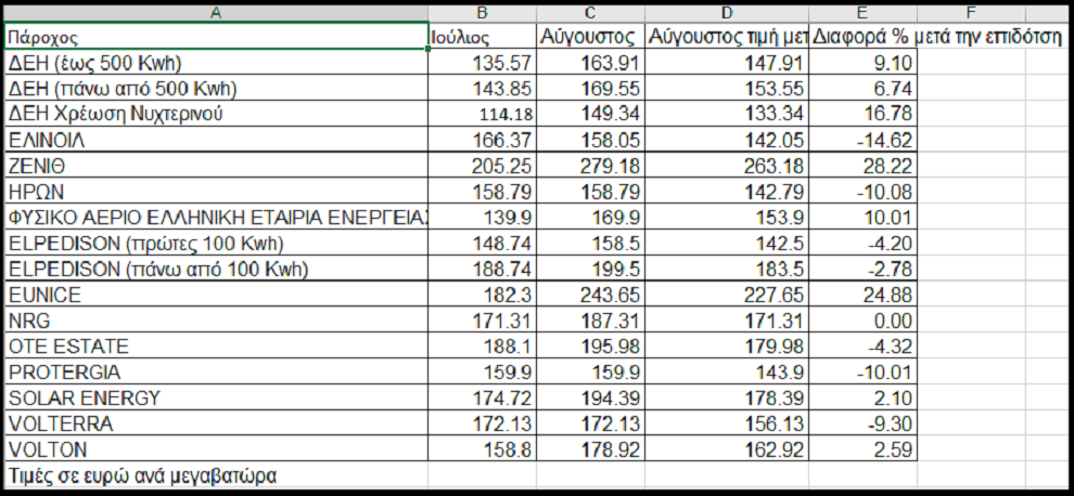 Σύγκριση στα οικιακά τιμολόγια για τους μήνες Ιούλιος-Αύγουστος: