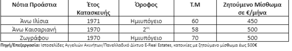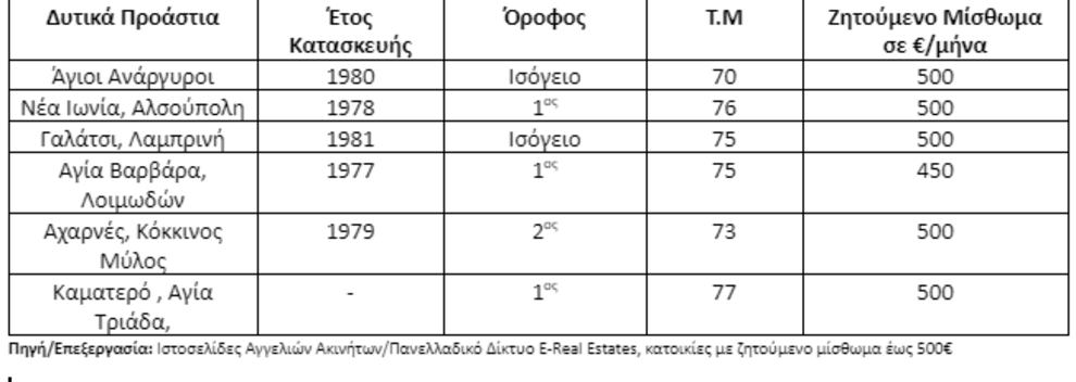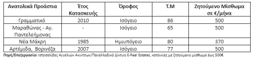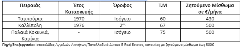 Παραδείγματα κατοικιών με ζητούμενο μίσθωμα έως 500 ευρώ