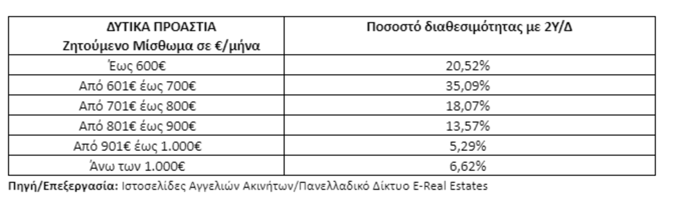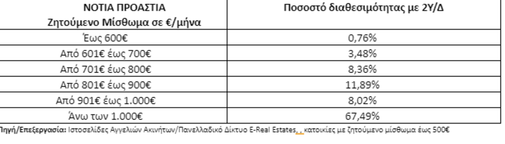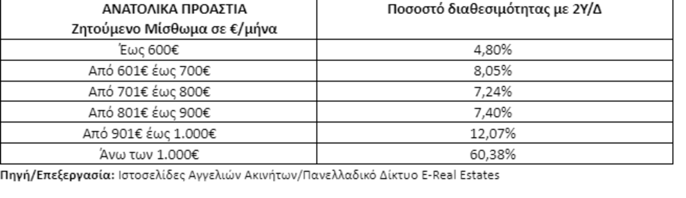 Η διαθεσιμότητα ακινήτων με βάση το ζητούμενο μίσθωμα