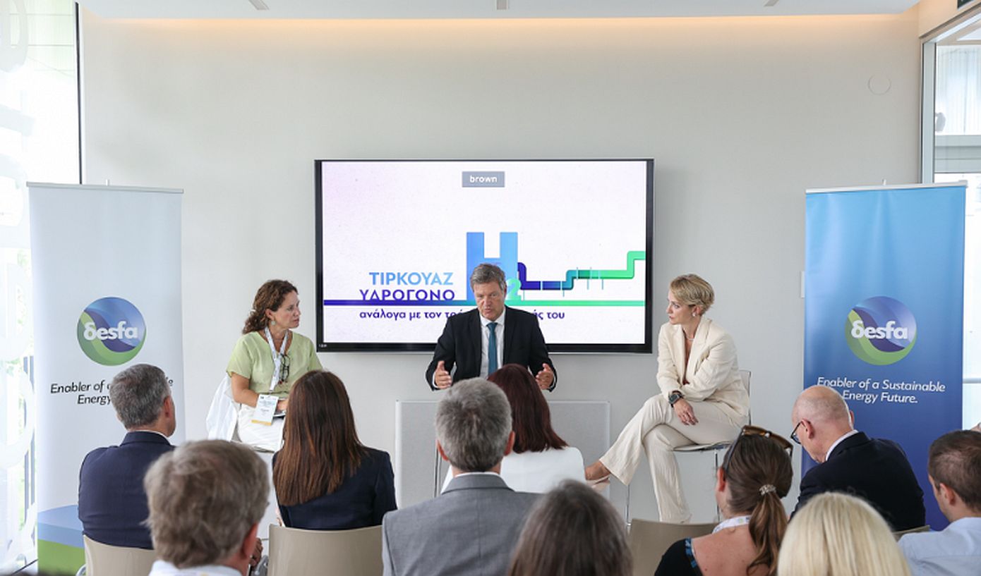 «Είδαμε ένα πείραμα σχετικά με το πώς τα δίκτυα φυσικού αερίου μπορούν σιγά σιγά να εμπλουτιστούν με νέες τεχνολογίες, όπως είναι το πράσινο υδρογόνο (…) Σήμερα, ευρισκόμενοι στον ΔΕΣΦΑ, είχαμε την ευκαιρία να συζητήσουμε με τον κ. Χάμπεκ νέες ευκαιρίες συνεργασίας στα ζητήματα του υδρογόνου. Η Ελλάδα μπορεί να καταστεί χώρα- παραγωγός υδρογόνου και να έχει τη δυνατότητα να μεταφέρει υδρογόνο από άλλες χώρες -από τη Μέση Ανατολή, από τη Βόρεια Αφρική- σε χώρες της Κεντρικής Ευρώπης, όπως είναι η Γερμανία, όπου, όπως συζητήσαμε με τον κ. Χάμπεκ, υπάρχει πολύ μεγάλη ανάγκη για χρήση υδρογόνου στη βιομηχανία και σε άλλες δραστηριότητες», επισήμανε η κα Σδούκου, ενώ σε ερώτημα του ΑΠΕ-ΜΠΕ, σχετικά με το πόσο γρήγορα η Ελλάδα θα μπορούσε να εξελιχθεί σε εξαγωγέα πράσινου υδρογόνου, με βάση τη σημερινή πρόοδο των υποδομών, απάντησε: «Αυτές οι τεχνολογίες (υδρογόνου) χρειάζονται χρόνια για να ωριμάσουν κι από τις συζητήσεις που έχουμε κάνει μέχρι τώρα σε ευρωπαϊκό επίπεδο, θα έλεγα ότι όλα αυτά θα τα δούμε να ωριμάζουν και πλέον να τεστάρονται μετά το 2030, βαδίζοντας προς το 2040».