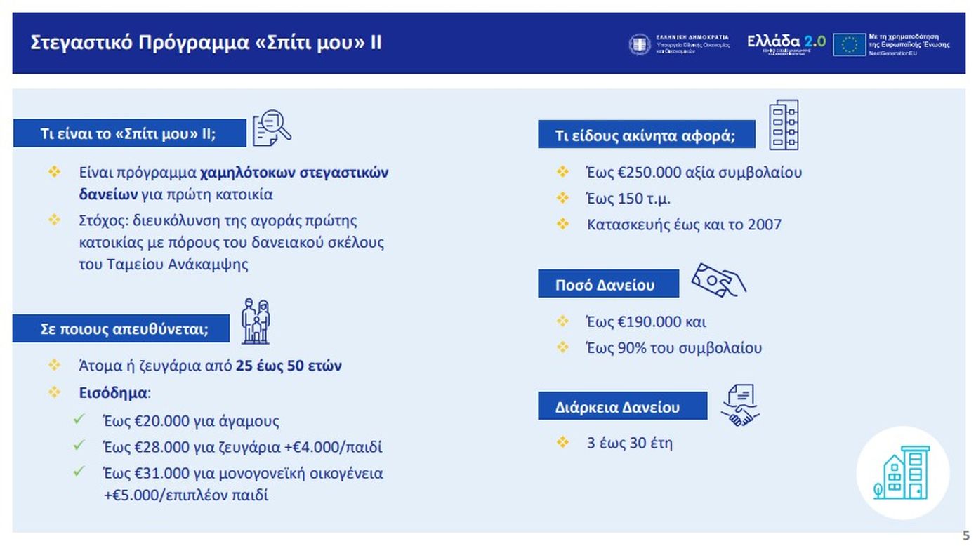 Με πρωτόγνωρη ταχύτητα και ευκολία ως προς τις διαδικασίες μέσα σε διάστημα μόλις 16 μηνών από το «Σπίτι Ι» έχουν εκταμιευθεί 7.123 δάνεια ύψους 685,42 εκατ. ευρώ, έχουν γίνει 7.355 συμβάσεις και 9.147 υπαγωγές.